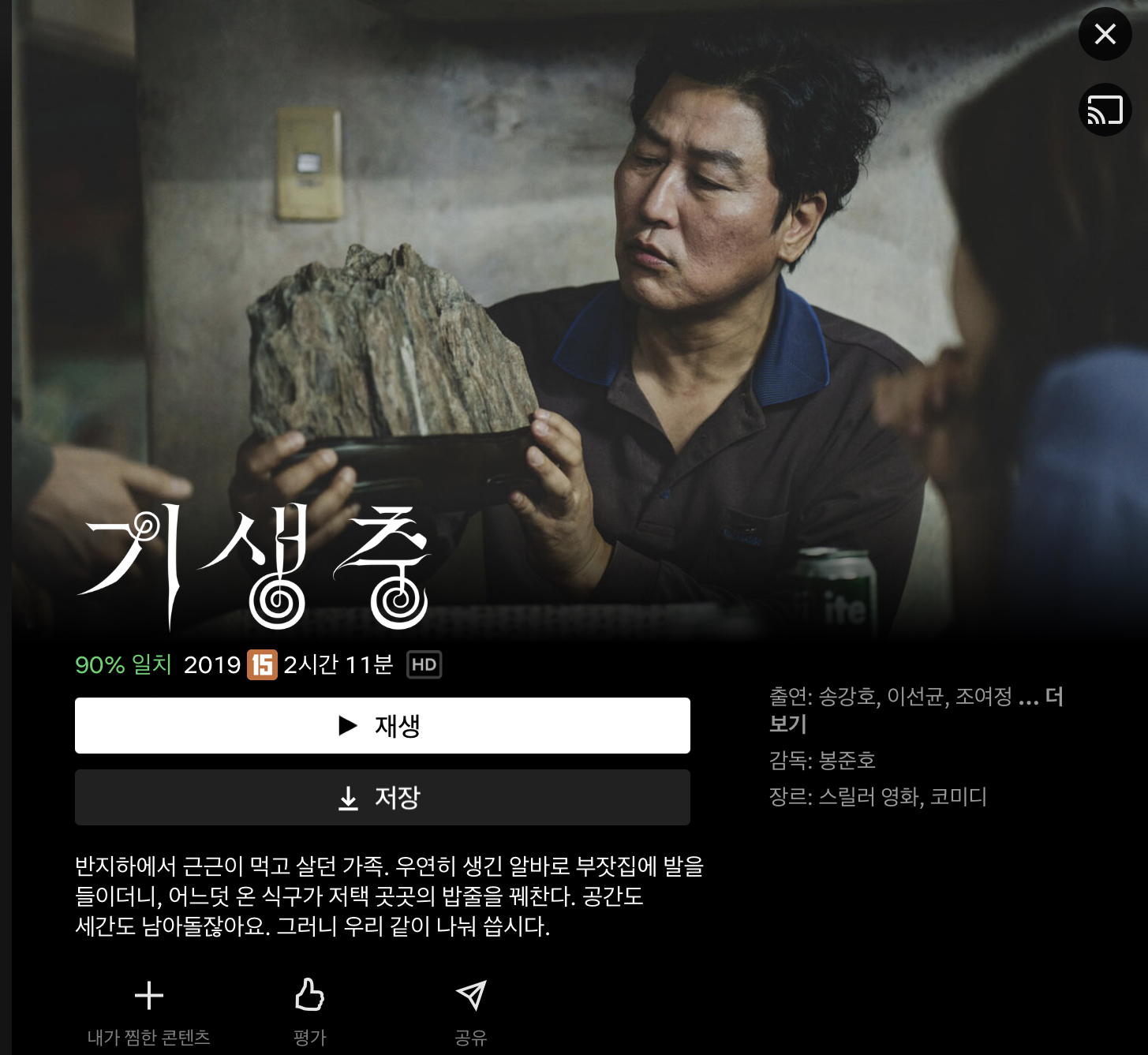 봉준호 감독의 영화는 항상 이목을 집중시킵니다. 오늘 소개해 드릴 영화 기생충도 그렇죠. 이 영화는 제목과는 달리 기생충은 한 장면도 나오지를 않습니다. 하지만 왜 이런 제목이 지어졌는지는 알 수 있죠. 그리고 여러 가지 아이러니한 사실을 깨닫게 해 줍니다. 출연진들을 보면 송강호(기택 역), 이선균(동익 역), 조여정(연교 역), 최우식(기우 역), 박소담(기정 역), 이정은(문과 역), 장혜진(충숙 역) 배우님 외 많은 분들이 나옵니다.