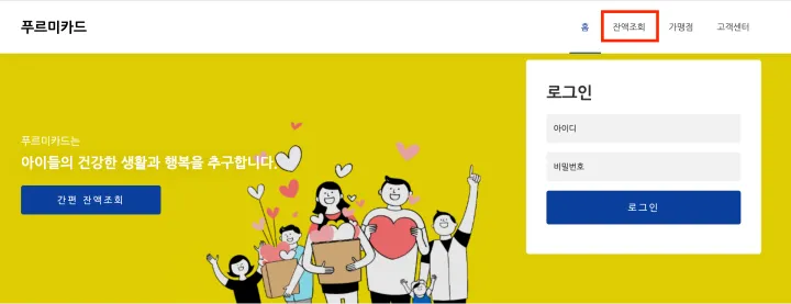 온라인에서 꿈자람 카드 잔액조회, 가맹점 확인방법