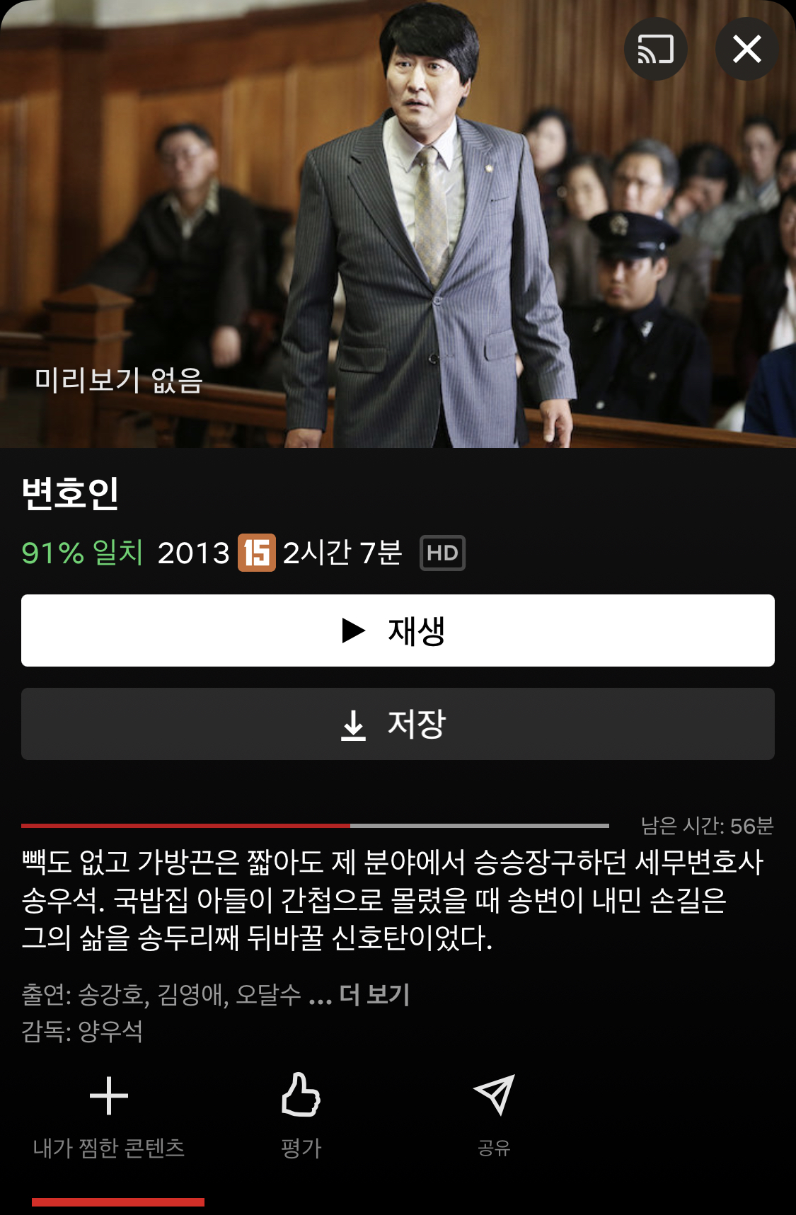양우석 감독이 메가폰을 잡았고 송강호(송우석 역), 김영애(최순애 역), 오달수(박동호 역), 곽도원(차동영 역), 임시완(진우 역), 송영창(판사 역), 정원중(김상필 역), 조민기(강 검사 역), 이항나(수경 역), 이성민(이윤택 역), 차은재(미스 문 역), 차광수(박병호 역), 한기중(이흥기 역), 심희섭(윤중위 역), 조완기(기웅 역) 배우님 등 출연하셨습니다.